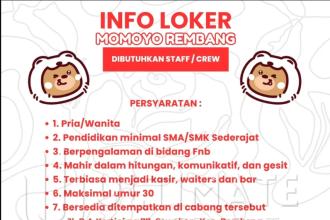 Lowongan Kerja Staff Crew Momoyo Rembang: Butuh Pengalaman F&B