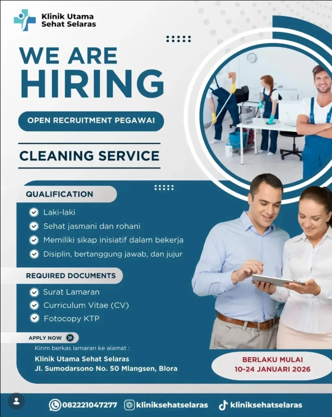 Bagi Anda para pencari kerja laki-laki di wilayah Blora yang memiliki fisik prima dan semangat kerja tinggi, Klinik Utama Sehat…